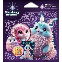 Un monde mystérieux et féerique à découvrir grâce à 15 stickers FANTASY DREAMS à décorer ! Cette pochette contient un set d'application facile (coupelle, carré de cire et stylet), 2250 pixel strass de 3 couleurs (rose, violet et bleu) et 750 mini cristaux (turquoise) pour sublimer les stickers et le