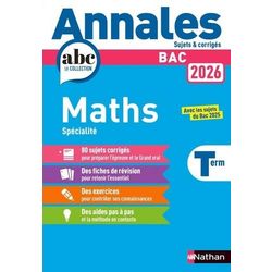 Les Annales ABC du BAC pour réviser et préparer l'épreuve de Mathématiques Terminale du Bac 2026. - 80 sujets corrigés pour préparer l'épreuve et le Grand oral. - Des fiches de révisions pour retenir l'essentiel. - Des exercices pour contrôler ses connaissances. - Des aides pas à pas et la méthode en contexte + Rédigé par des enseignants ! + Annales ABC du BAC 2026 Mathématiques Terminale - Enseignement de spécialité Conforme aux programmes du Bac Une nouvelle formule pour préparer avec succès l'épreuve finale du nouveau Bac ! Les épreuves du nouveau Bac expliquées. Les bonnes méthodes à acquérir pour réussir. Des rappels de cours, des QCM et des exercices pour faire le point. Des sujets pas à pas avec des corrigés expliqués. Des sujets de Bac comme à l'examen pour s'exercer. Un cahier spécial Grand oral.