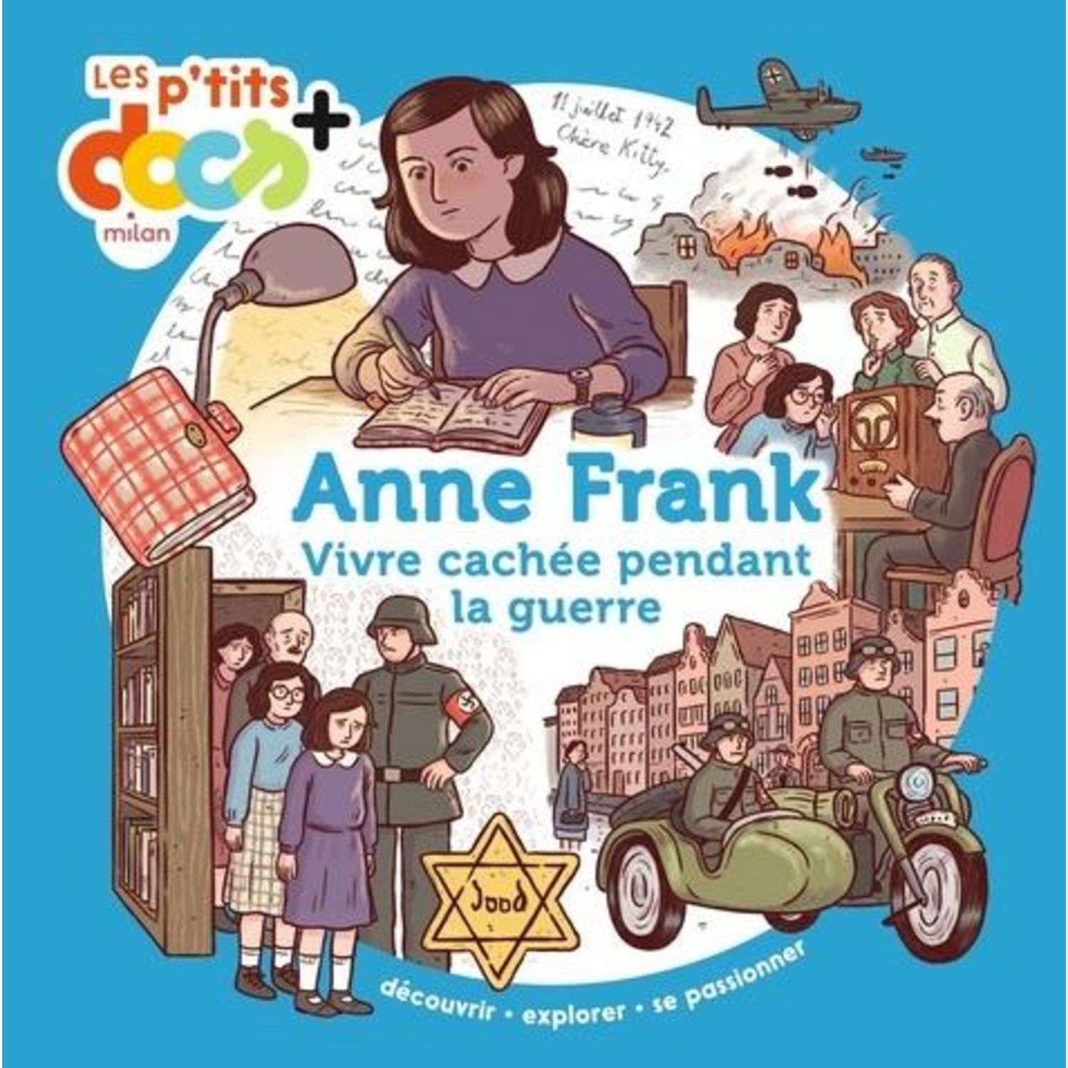 Les P'tits docs + , des documentaires pour aller plus loin après Mes p'tits docs ! Ce livre raconte la vie d'Anne Frank, une jeune fille juive contrainte de vivre cachée, qui témoignait de son quotidien dans son journal intime pendant la Seconde Guerre mondiale. Un témoignage précieux sur l'Holocauste En se confiant à son amie imaginaire Kitty dans son journal intime, Anne raconte la vie quotidienne dans l'Annexe et témoigne des difficultés, de ses peurs et de ses espoirs. Quand Anne entend à la radio le ministre de l'Education encourager les gens à écrire leur vie pour publier des témoignages après la guerre, elle décide de reprendre son journal pour en faire un livre ! Publié en 1947, Le Journal d'Anne Frank est aujourd'hui traduit dans plus de soixante-dix langues. Une terrible période historique expliquée de façon accessible A travers la vie d'Anne Frank, les jeunes lecteurs et lectrices comprendront, grâce à des mots simples, les grands événements de la Seconde Guerre mondiale. L'Holocauste, ou Shoah, l'extermination des Juifs par les nazis, a fait plus de cinq millions de victimes. Les P'tits doc + , des docs pour lire seul(e) Après Mes p'tits docs , cette collection est destinée aux enfants qui commencent à lire en autonomie. Plus d'informations, plus de pages, un livre plus grand... mais un documentaire qui se lit toujours comme une histoire. A la fin de l'ouvrage, ce documentaire présente des exemples de personnes ayant réussi à cacher des Juifs durant la Seconde Guerre mondiale pour leur sauver la vie.