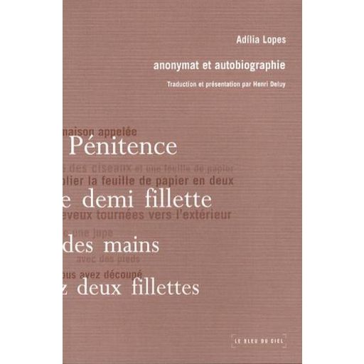 ANONYMAT ET AUTOBIOGRAPHIE, Lopes Adilia