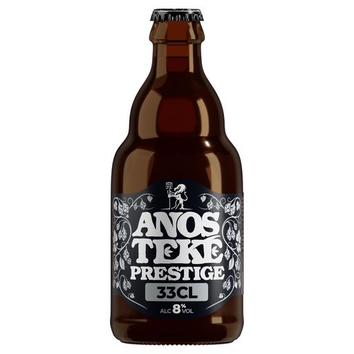Anosteké Prestige est une bière aux aromes épicés et maltées. En fin de bouche on peut y retrouver des notes de vanille et coco amenées par le houblon Sorachi.