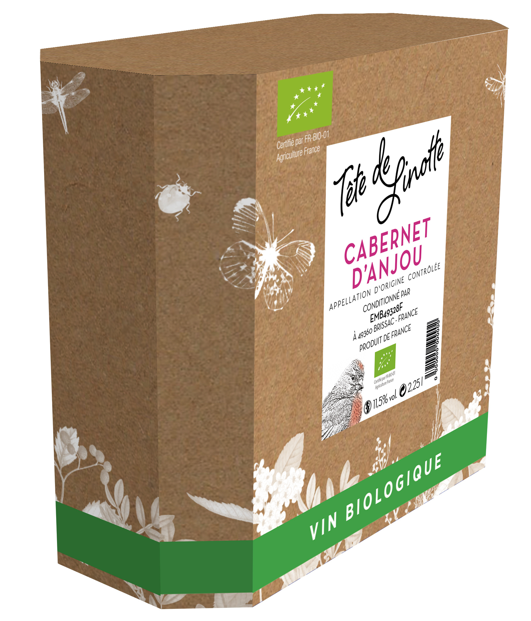 biologique avec pour effigie une espèce protégée sur notre territoire et fortement sympathique : la linotte mélodieuse.