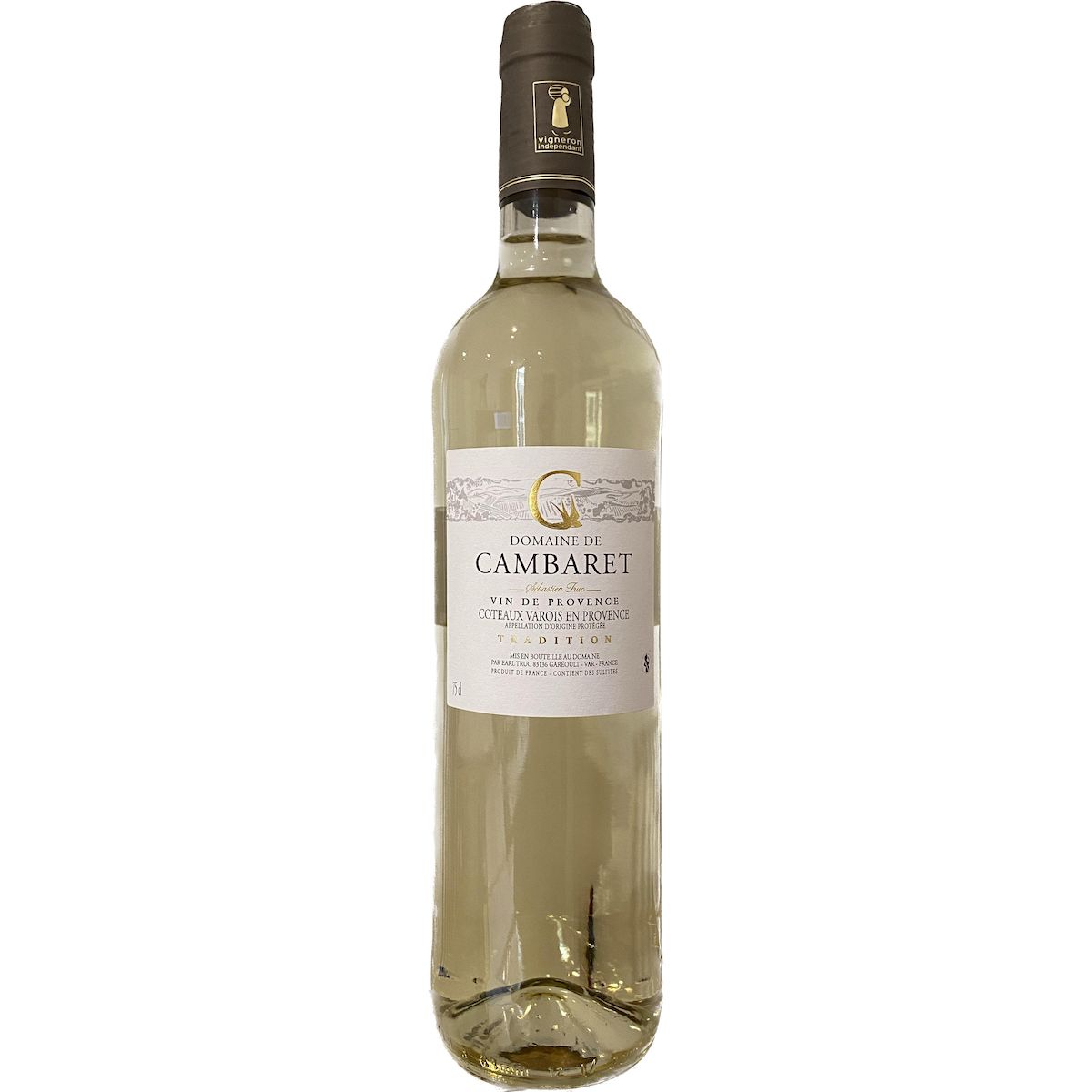 Le Domaine Cambaret Tradition est un vin blanc AOP Coteaux Varois en Provence qui illustre la convivialité provençale. Sa dégustation offre un nez flatteur aux parfums de fleurs et de fruits à chair blanche. C’est un vin particulièrement agréable pour un apéritif entre amis ou en famille, et sa fraî