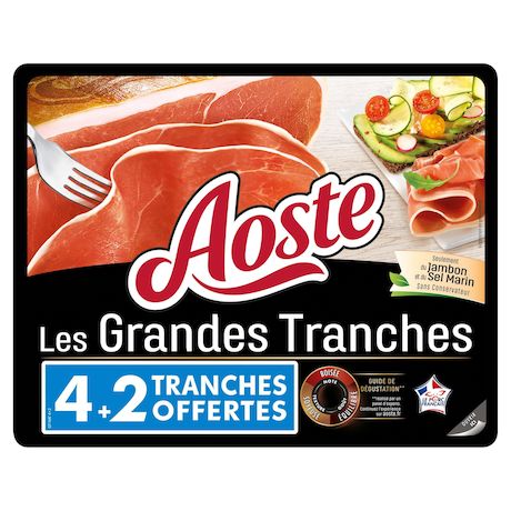 Le jambon Aoste est tranché au meilleur de sa saveur pour offrir à votre table finesse et raffinement au quotidien.