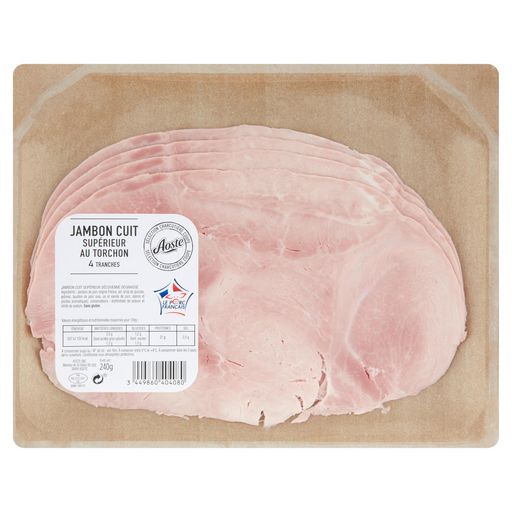 Un jambon cuit généreux et savoureux découenné et dégraissé. Jambon cuit certifié Le Porc Français
