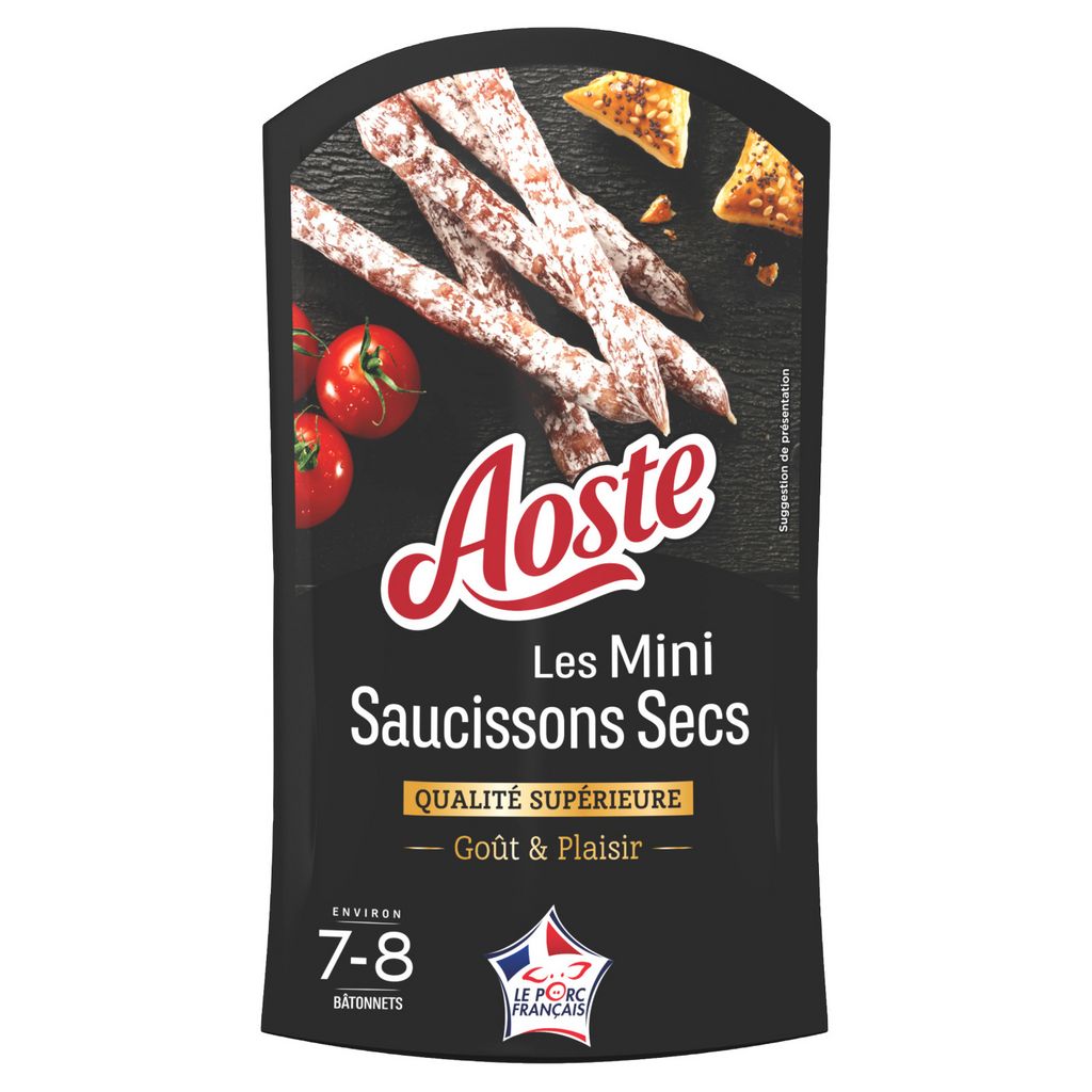Aoste vous invite à découvrir ses savoureux minis saucissons secs idéaux pour l'apéritif. Ils sont 100% français : viande et fabrication françaises.