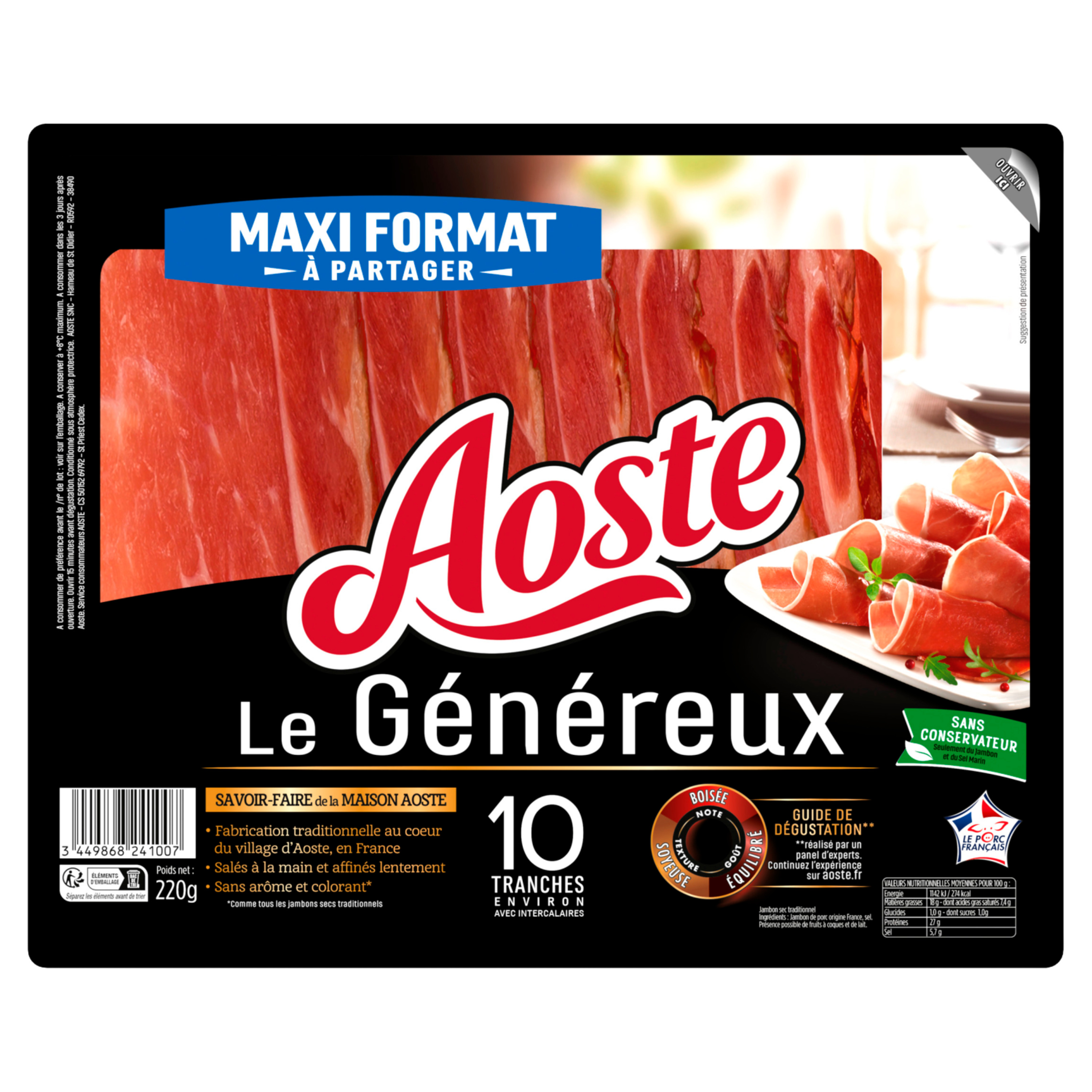 Ce format 'Plateau' est idéal pour faire décourvrir à vos convives le jambon Aoste en offrant à votre table finesse et raffinement.