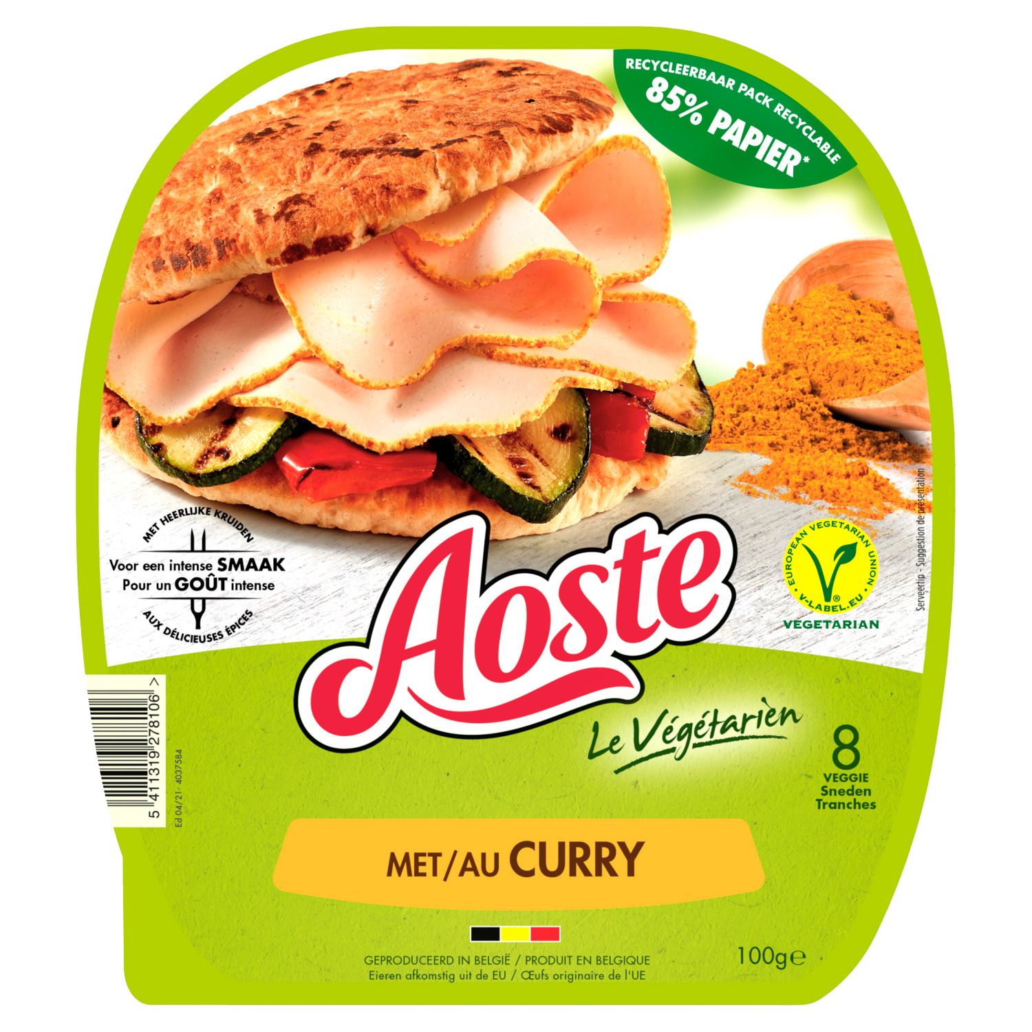 Aoste vous présente sa nouvelle gamme végétale avec de savoureuses tranches au curry, saines et riches en protéines, dans un emballage recyclable à 80%. Sans exhausteur de goût, sans gluten, sans soja, sans lactose, et sans huile de palme.