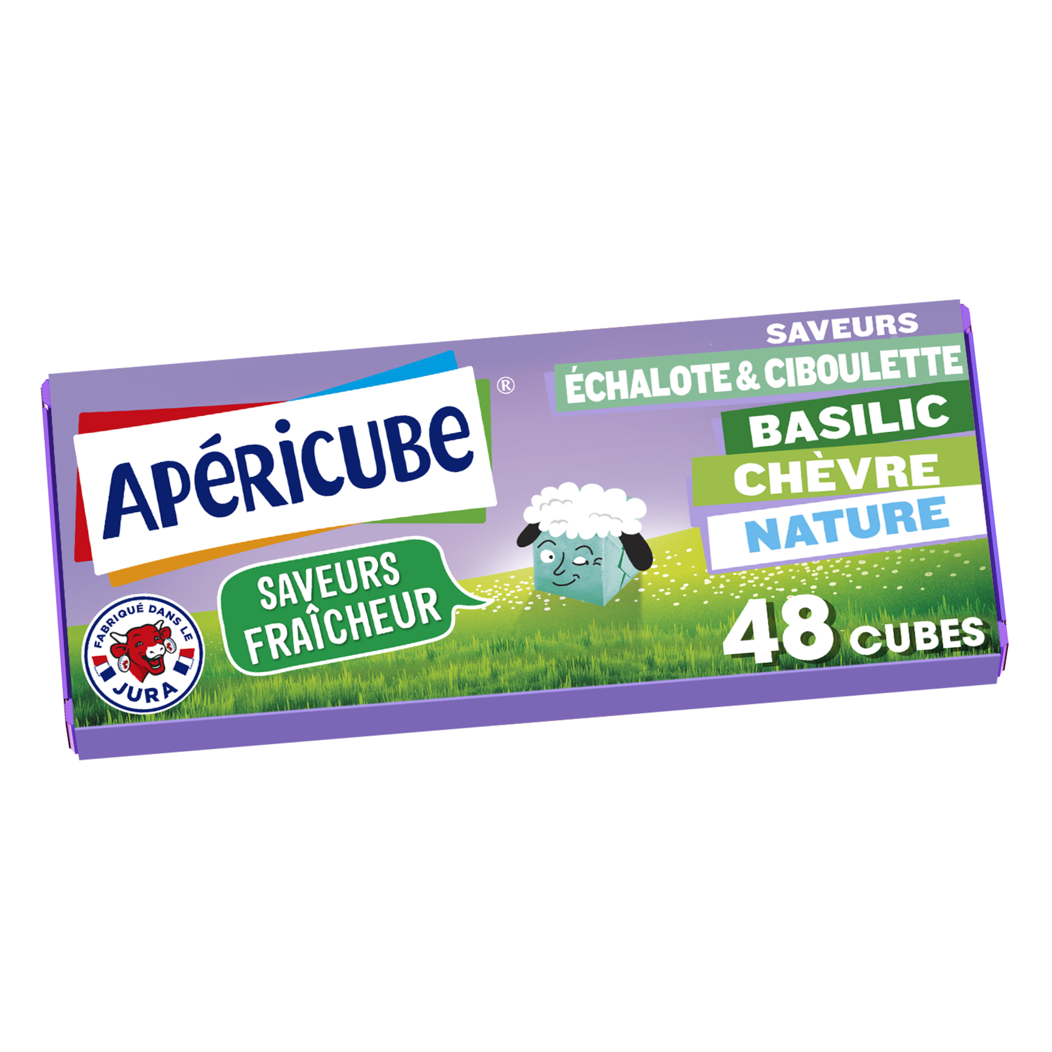 Le fromage apéritif Apéricube Nature et Saveurs Fraîcheurs, des petits cubes fromagers frais et onctueux, goûts Echalote Ciboulette, Basilic, Chèvre et Nature, qui garniront parfaitement tous vos apéros ! Pour un apéritif fabriqué en France dans nos usines du Jura, sans conservateur, sans colorant ni d'arômes artificiels ajoutés.