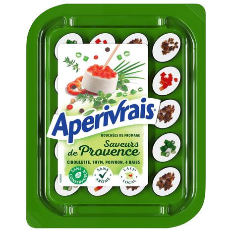 Ingrédients : Ingrédients du fromage : LAIT (Origine: France), CRÈME, sel, ferments lactiques. Ingrédients sur le fromage (en quantité variable) : poivron rouge, mélange 4 baies (poivre blanc, poivre noir, poivre vert, piment), basilic, thym, ciboulette. Produit fabriqué dans un atelier utilisant du lait de chèvre et des fruits à coque.