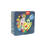 Boite de 16 fiches à compléter avec des gommettes géométriques assorties sur le thème de la lune, des étoiles et des douceurs de rêve. Un jeu de gommettes avec une forte valeur éducative! Colle les gommettes sur les cartes à compléter en te guidant avec le modèle et le point de couleur! Stimule la psychomotricité, développe la zone logique mathématique, favorise la vision spatiale, encourage la créativité? Chaque boîte contient : - 1 modèle couleur 34x34cm + 1 notice + 16 fiches à compléter 16x16cm + des feuilles de gommettes enlevables A partir de 3 ans