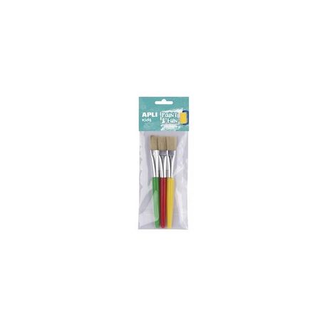 Pinceaux en plastique jaune, vert et rouge de 1,6 cm. Idéal pour les premières peintures. Vendus en 3 unités