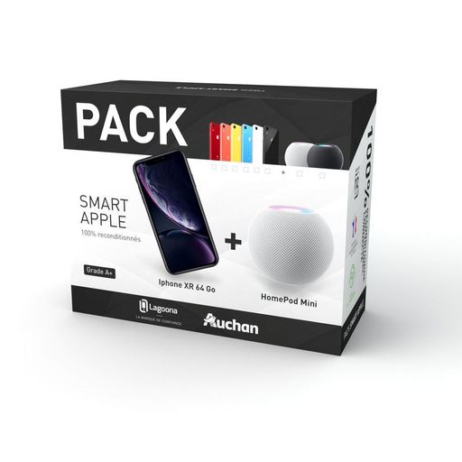 APPLE Pack iPhone XR reconditionné LAGOONA 64Go - Grade A+ +Home Pad mini - BlancLe pack iPhone XR reconditionné LAGOONA 64Go - Grade A+ avec Home Pad mini - Blanc est une offre complète comprenant un iPhone XR reconditionné, un état de qualité supérieure, ainsi qu'un Home Pad mini, tous deux dans u