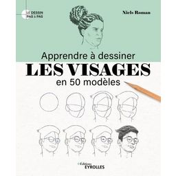 Laissez-vous guider pas à pas Dessiner un portrait réaliste de face, de profil ou de trois quarts implique de savoir placer avec justesse chaque élément du visage mais aussi de connaître la mobilité de certains muscules qui conditionnent nos expressions... Pour vous aider, les 50 modèles de ce livre