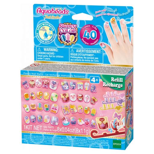 Cette recharge contient des ongles et décorations supplémentaires à utiliser en complément des coffrets pour prolonger l'activité créative. Choisis les ongles adaptés à ta taille. Décore les avec des autocollants. Puis, pose dessus des petits accessoires selon ton envie en les faisant adhérer avec de l'eau : ils colleront comme par magie ! Ensuite, pose un petit peu d'eau sur ton ongle, place l'ongle Aquabeads que tu as préparé, fais sécher 3 minutes : la magie opère de nouveau !. Change ta manucure à l'infini, selon tes envies, et en toute sécurité !