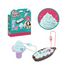 Pati-school est une activité de glaçage et de décoration. Les bases de création et les pâtes modelables (qui ne se mangent pas !) permettent aux enfants de devenir de véritables artistes ! Il suffit de glacer, de décorer et de laisser sécher à l'air libre pendant deux à trois jours, le temps que la pâte modelable durcisse. Cela donnera ensuite une jolie création à porter, utiliser en décoration, ou offrir à ses amis ! Le kit de décoration bleu inclut 2 bases de création, une poche à douille et sa pâte modelable, et des décorations qui permettent de créer 2 porte-clés !