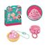 Pati-school est une activité de glaçage et de décoration. Les bases de création et les pâtes modelables (qui ne se mangent pas !) permettent aux enfants de devenir de véritables artistes ! Il suffit de glacer, de décorer et de laisser sécher à l'air libre pendant deux à trois jours, le temps que la pâte modelable durcisse. Cela donnera ensuite une jolie création à porter, utiliser en décoration, ou offrir à ses amis ! Le kit de décoration rose inclut 2 bases de création, une poche à douille et sa pâte modelable, et des décorations qui permettent de créer une bague et un porte-clés !