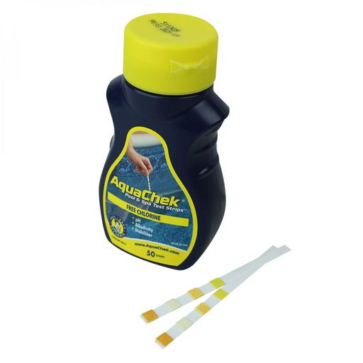 Les bandelettes Aquachek 4-en-1 sont utilisées pour les spas et les piscines. Les bandelettes Aquachek 4-en-1 permettent d'analyser le chlore libre, l'acide cyanurique, le pH et l'alcalinité totale de votre eau de piscine ou spa. Simple d'utilisation, il vous suffira de tremper la languette quelques secondes dans l'eau et de lire le résultat en le comparant à ce qui est noté sur la bouteille.