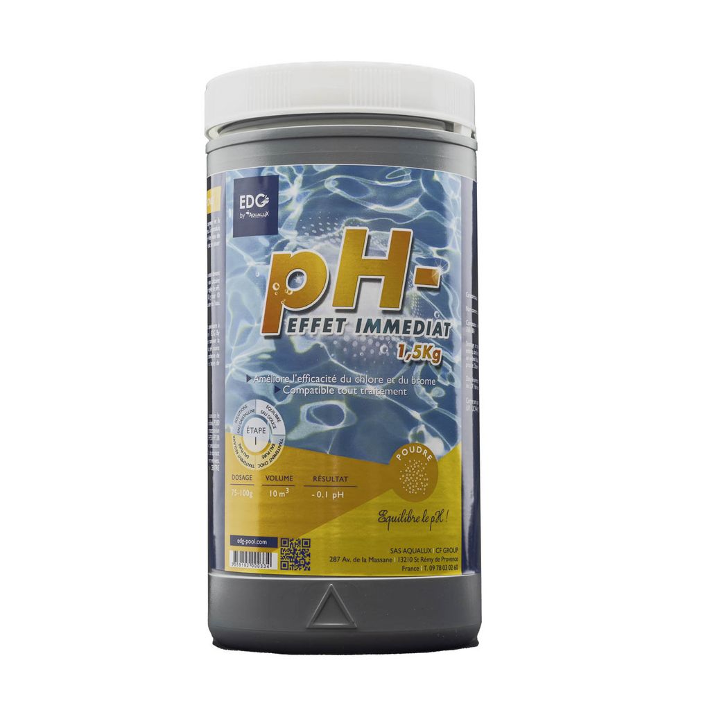 Description détaillée du produitProduit: Réducteur de Ph ( Ph- )Univers: PiscineUtilisation: Entretien de l'eau de votre piscinePoids: 1,5 kgForme: PoudreType: Réducteur de pHConvient pour les piscines et spas de toutes taillesMarque: EDG by Aqualux Access