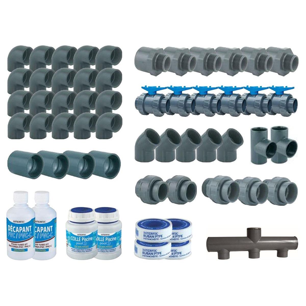 En savoir +Composition du kit de plomberie pour piscine 10 x 5 m :