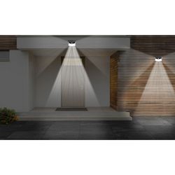 Thunderlight 3D Quadri - 212LED X2 _Dimensions produit: 15.7 x 5.7 x 11.6cm _Matière : ABS + Palstique _Couleur des 212 LEDs : Blanc froid _A monter soi-même : non _Poids du produit : 0.250kgs _Dimensions du colis : 16.2 x 12 x 10 CM _Informations supplémentaires : _4 modes d'éclairage : _S'allume dès la tombée de la nuit _Mise en veilleuse dès la tombée de la nuit et s'allume à la détection d'un mouvement _S'allume à la détection d'un mouvement dès la tombée de la nuit _OFF _Résistante à l'eau (Certification IP 44) _Batterie : 2PCS 3.7V 2400mah 18650 Li-ion _Panneau solaire : 5V 1.43W monocrystalline _ Temps de charge : 6 heures _400 lumens _Angle de détection : 120 degrés _ Distance de détection : 8-10 mètres