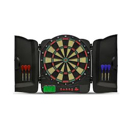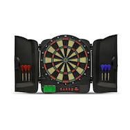 Cible électronique 21 jeux avec 595 niveaux de variation. 8 joueurs avec affichage indépendant. Compteur de points pour cricket. Arrêt automatique + option handicap. Effets sonores avec large anneau périphérique de récupération des fléchettes. Livré avec 6 fléchettes pointes plastiques, 1 lot de 20
