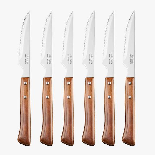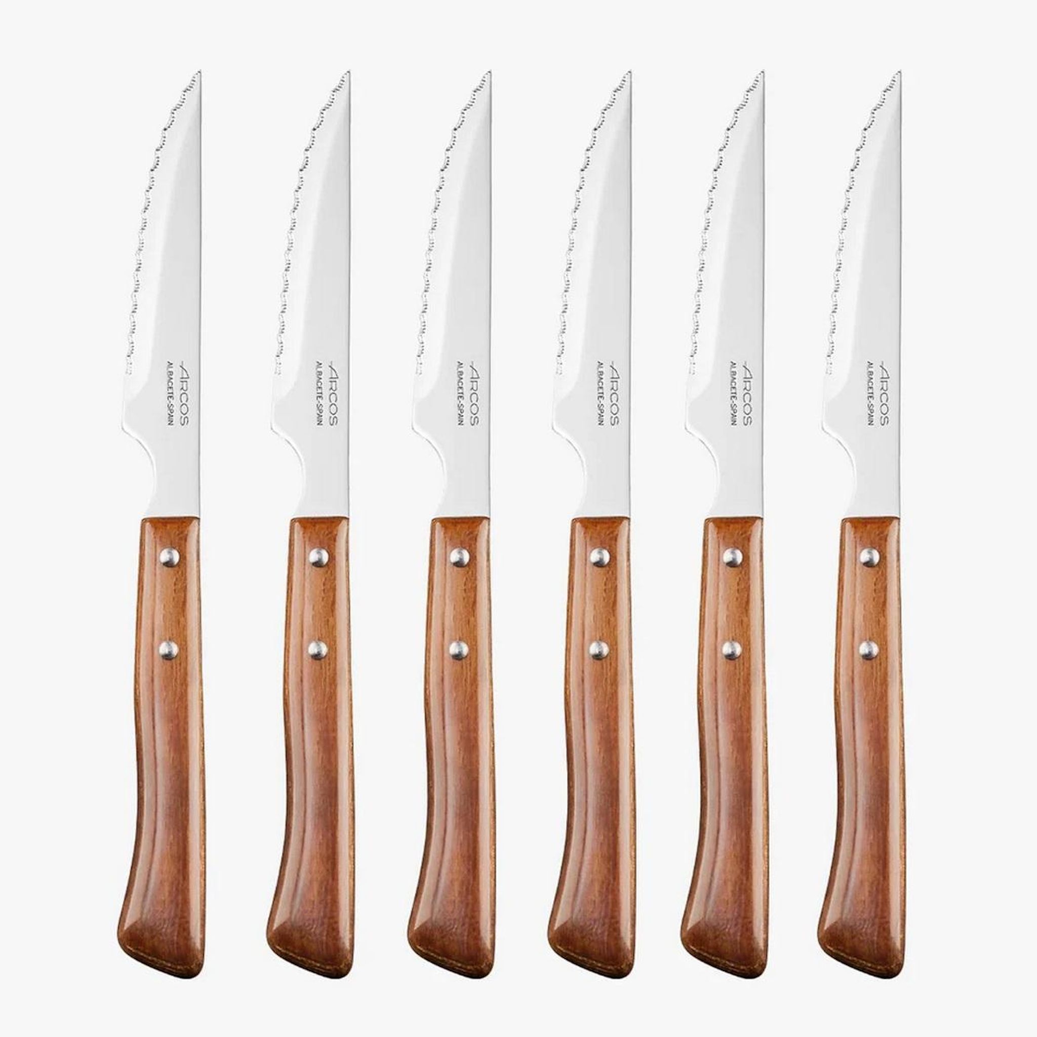 Arcos 377600 Coffret 6 couteaux à steak ARCOS Forest 377600. Couteaux en bois de peuplier compressé, parfaits pour un usage quotidien. Ce couteau a été fabriqué par des mains expertes dans l'usine Arcos, située à Albacete, en Espagne. Il est d'excellente qualité et offre des performances de coupe él