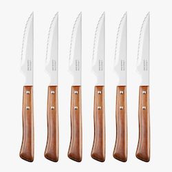Coffret 6 couteaux steak lame crantée bois - 377600