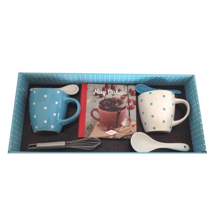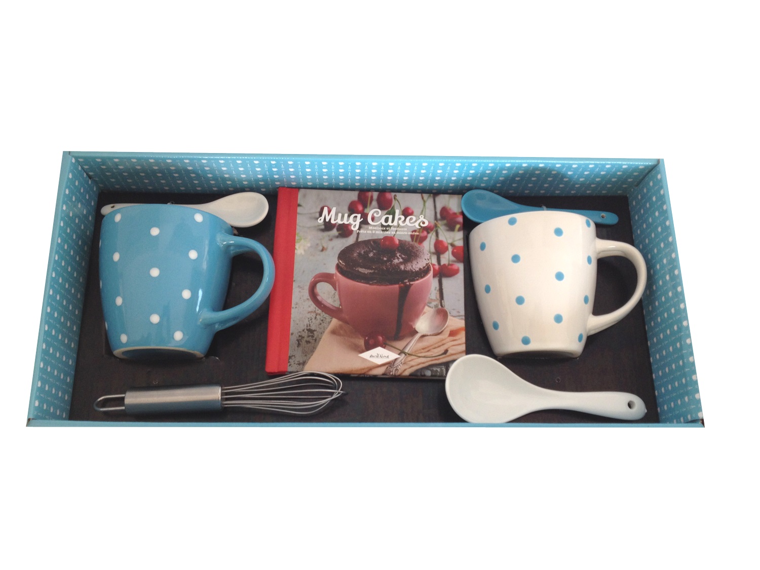 En savoir +Craquez pour ce coffret grand mug cake à pois pour vous ou pour offrir. Ce coffret est composé de 2 mugs bicolores, 2 cuillères en céramique, 1 mini fouet, 1 cuillère doseuse et d'un livre de recette.