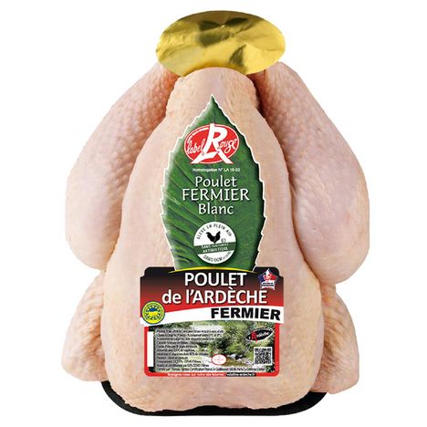 Poulet fermier blanc label rouge d'Ardèche prêt à cuire