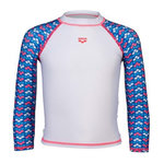 Optez pour le lycra fille Arena !Manches longuesCol rondColoris : Blanc/Bleu/RoseImprimé sur les manchesComposition : 82% Polyester, 18% Elastane