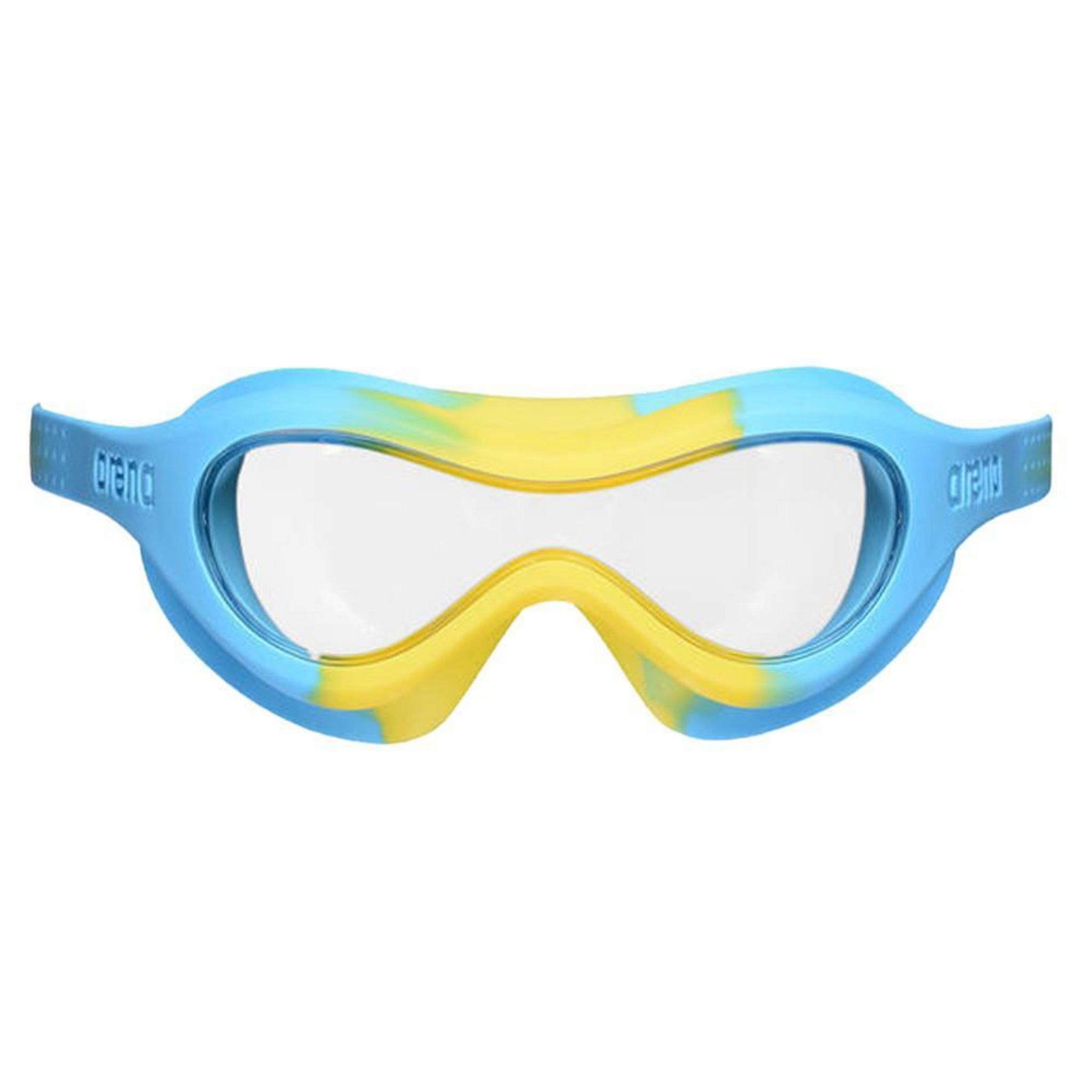 Masque de piscine pour enfant de la marque Arena ! Couleurs : Bleu/Jaune Antibuée Protection contre les UV Aucune fuite Réglage simple Composition : 60% silicone, 38% polycarbonate, 2% polypropylène