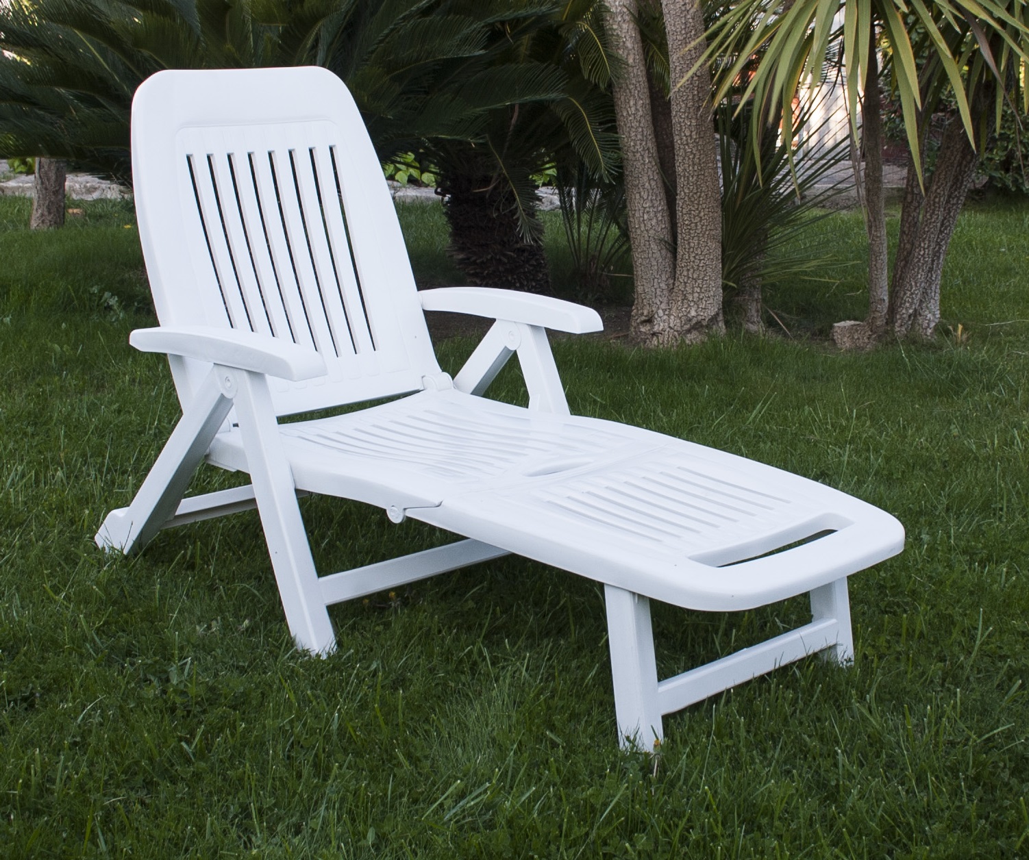 Bain de soleil pliable en résine de coloris blanc très facile à transporter et à ranger, il sera à coup sûr votre compagnon de choix lors de vos séances de détentes cet été !