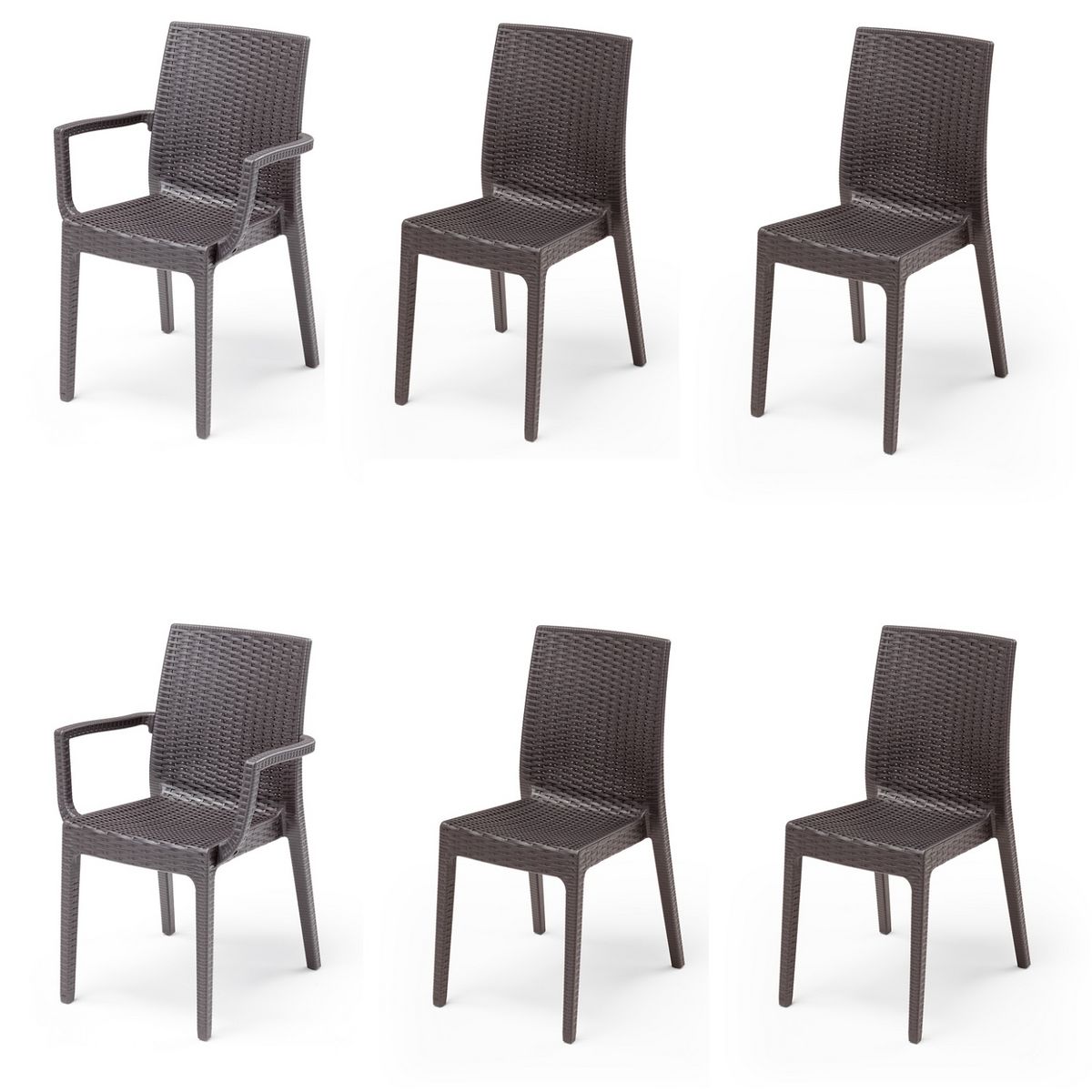 Lot de 4 chaises et de 2 fauteuils de jardin - Chocolat - URANO