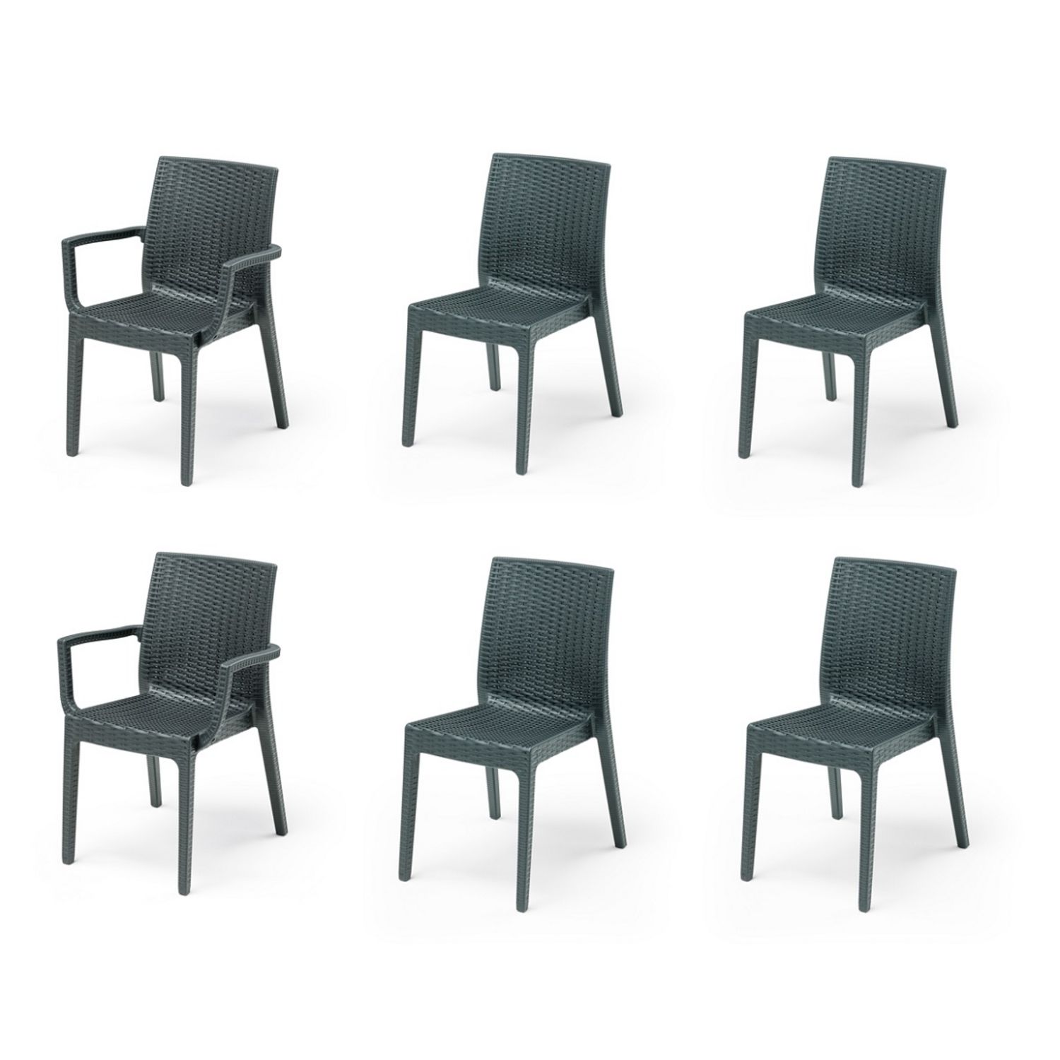 Lot de 4 chaises et de 2 fauteuils de jardin - Gris anthracite - URANO