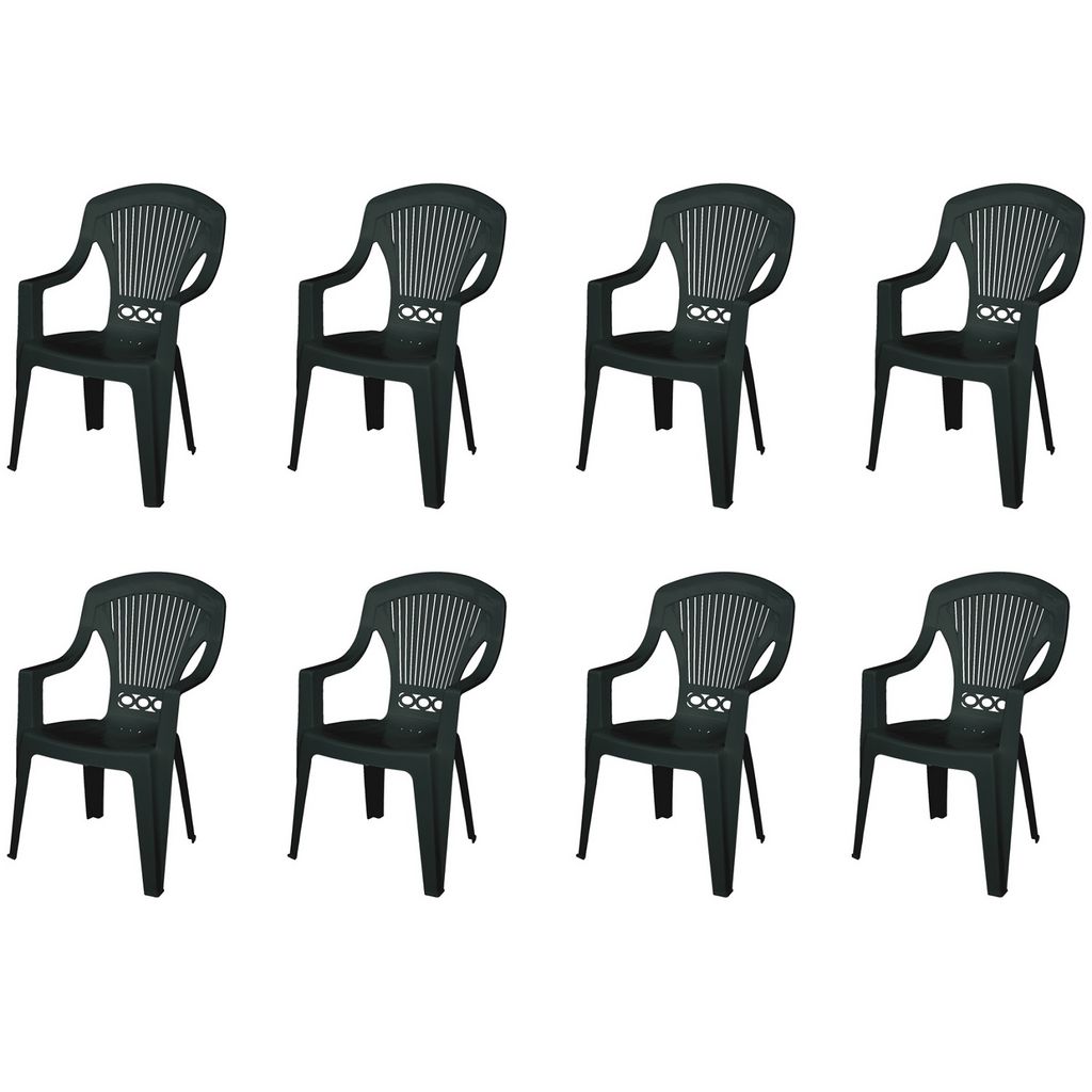 Lot de 8 fauteuils de jardin - Résine - Anthracite - STRESA