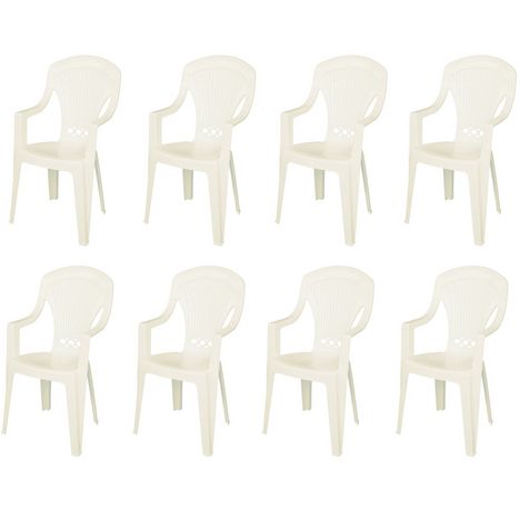 Lot de 8 fauteuils de jardin - Résine - Blanc - STRESA