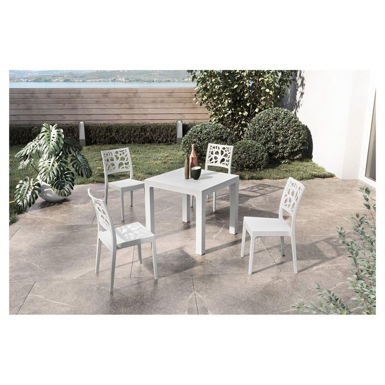 Salon de jardin - Table et chaises - 4 places - Résine - Blanc - ARES