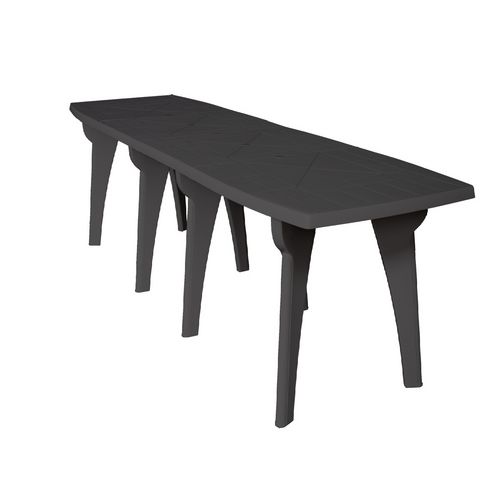 Table avec double rallonge 320 x 90 x h72 cm - chaque rallonge est munie de 2 pieds démontables pour garantir le maximum de stabilité. Finition plateau anti rayure - trou pour parasol dans chaque dimension choisie