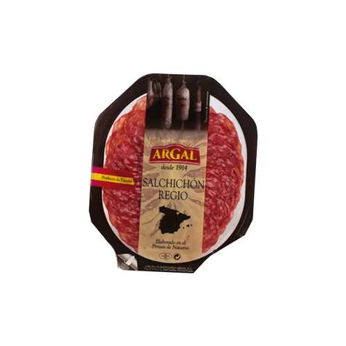Ingrédients : Viande de porc, sel, lactose, protéine de soja, lait en poudre, dextrine, épices, sucre, antioxydant (E-316), stabilisant (E-450i), conservateurs (E-250, E-252), colorant (E-120)
