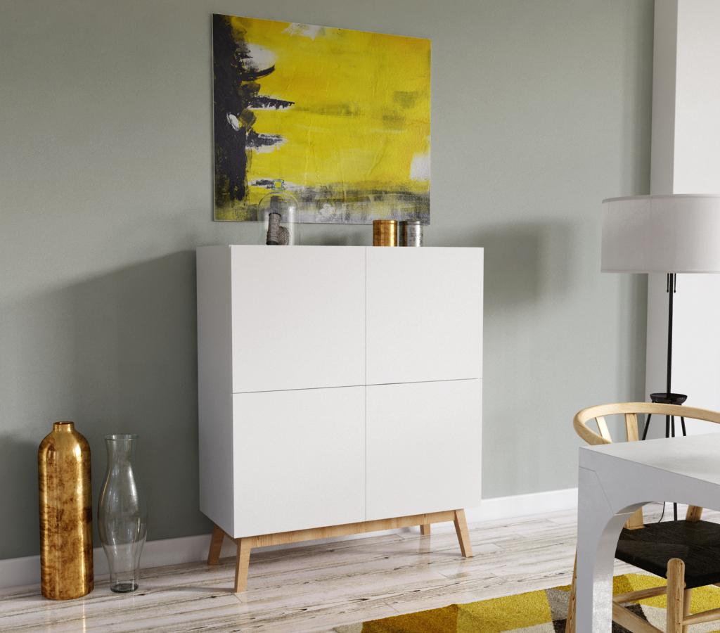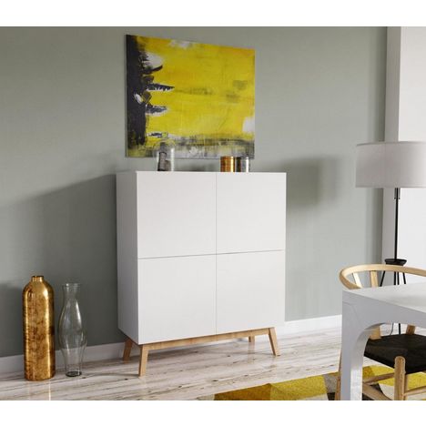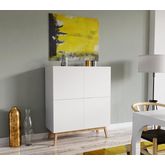 Faites vous plaisir avec ce magnifique meuble design ! A la fois pratique et déco, cet argentier meublera parfaitement votre salle à manger. Esthétique et très qualitatif avec son piétement en tilleul massif et ses portes en biseau en panneau décor blanc, vous apprécierez également son côté fonctionnel avec ses 4 portes et ses 8 niches de rangements intérieures.