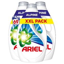La lessive liquide Ariel Alpine a une action détachante en un seul lavage. De plus, elle est fabriquée en France. Vous pouvez aussi utiliser la lessive liquide Ariel Alpine pour prétraiter les taches à l'aide du bouchon vert, puis placer vos vêtements dans votre lave-linge. Pour de meilleurs résultats, remplissez le bouchon vert de lessive liquide Ariel jusqu'au niveau de remplissage du tambour et placez-le dans le tambour, sur les vêtements. Pour des raisons environnementales, les bouteilles ne sont pas toutes fournies avec un bouchon. Celui-ci est disponible gratuitement sur ariel.info.