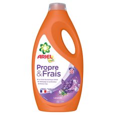 La lessive liquide Ariel Simply Lavande est le choix économique d'Ariel. Elle garantit un lavage intense et une efficacité à froid, laissant votre linge tout simplement propre et frais. De plus, la lessive liquide Ariel Simply se caractérise par un parfum floral de lavande qui laisse une agréable senteur de propreté sur vos vêtements. La lessive liquide Ariel Simply est fabriquée en France et conditionnée dans une bouteille recyclable. Vous pouvez aussi utiliser la lessive liquide Ariel Simply Lavande pour pré-traiter les taches avec le bouchon vert, puis placer vos vêtements dans votre lave-linge. Pour de meilleurs résultats, mettez le bouchon de dosage contenant la lessive liquide Ariel dans le tambour de la machine à laver. Pour des raisons environnementales, nous ne fournissons pas de bouchon de dosage avec toutes les bouteilles. Ils sont disponibles gratuitement sur le site web ariel-info.com.