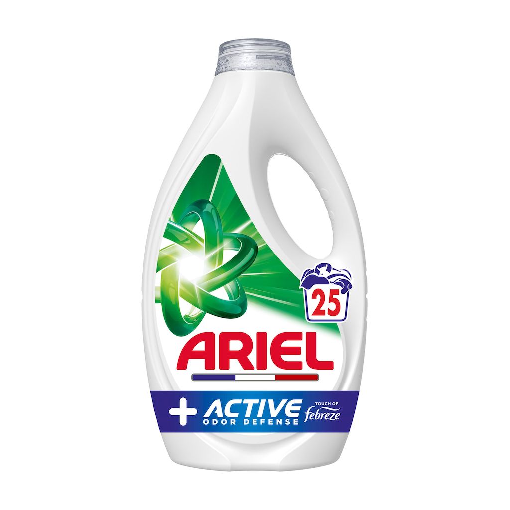 Découvrez la puissance de la lessive liquide d'Ariel + Active Odor Defense. Sa formule offre un nettoyage impeccable tout en combattant les taches et les odeurs. Spécialement conçu avec une touche de Febreze, il élimine même les odeurs transpiration après 7 jours. Le détergent liquide Ariel fonctionne également très bien, même dans des cycles froids et courts. Laver à une température plus basse permet d'économiser jusqu'à 60% d'énergie à chaque lavage (consommation énergétique de la machine à laver, de 60°C à 30°C, cycle normal) et contribue à préserver vos tissus plus longtemps. Le détergent liquide Ariel est également fabriqué en France. Pour les taches tenaces, vous pouvez utiliser le détergent liquide Ariel pour prétraiter les taches avec le bouchon doseur, puis placer vos vêtements dans votre machine à laver. Pour le dosage, remplissez le bouchon avec le liquide de lavage Ariel selon la quantité de linge et placez-le dans le tambour, sur les vêtements pour obtenir les meilleurs résultats de lavage. Pour des raisons environnementales, toutes les bouteilles ne sont pas équipées d'un bbouchon doseur, il est disponible gratuitement sur ariel.info.