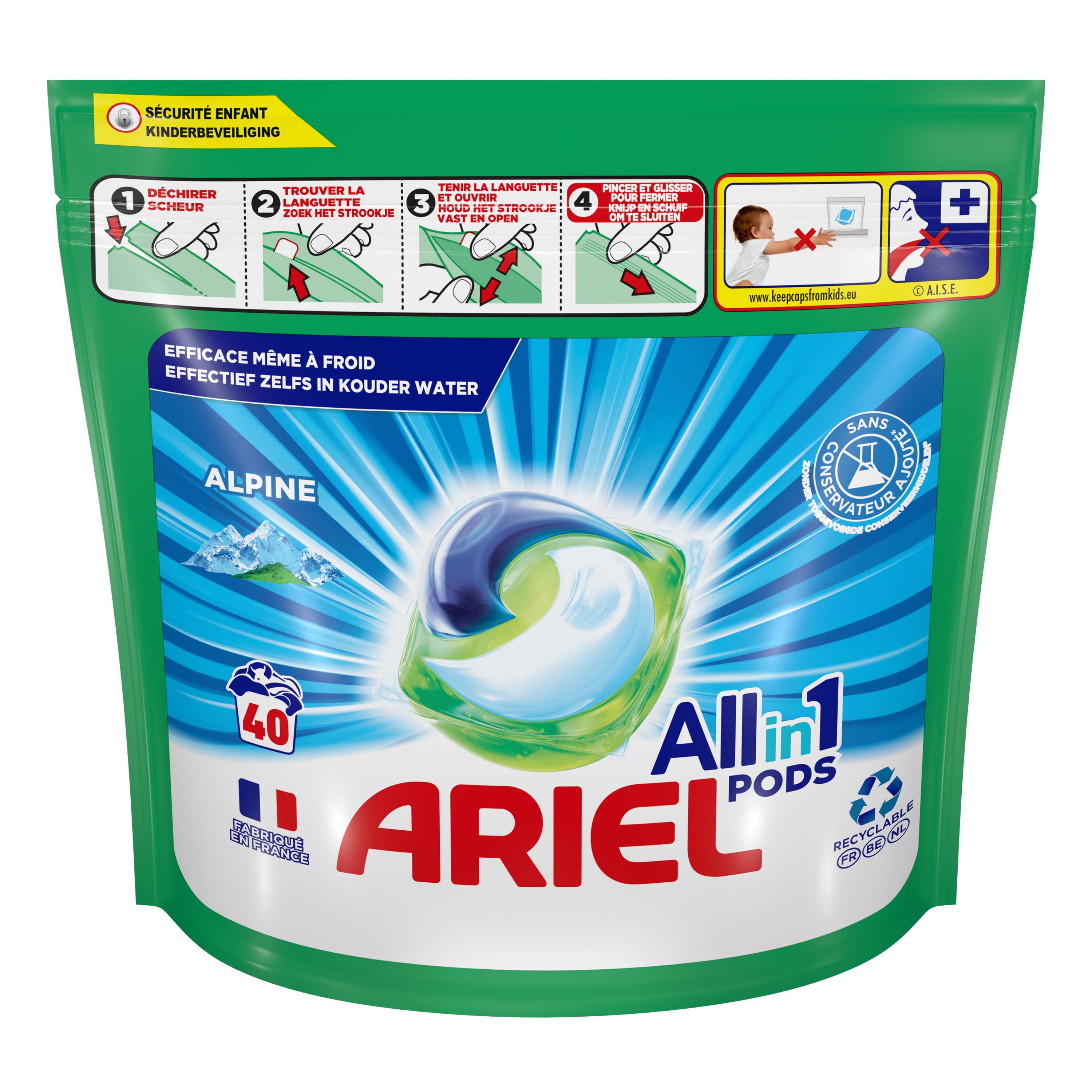Pods capsules de lessive tout en 1 alpine
