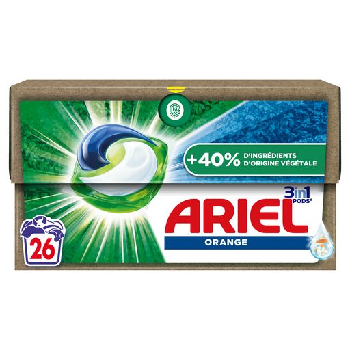Découvrez la lessive en capsules Ariel 3en1 PODS Fraîcheur de l'Océan Avec Une Touche d'Huile Essentielle d'Orange, qui offre 100 % de propreté Ariel (par rapport à Ariel Original) avec 40 % en plus d'ingrédients végétale . Elle contient un minimum de 33 % d'ingrédients végétale, soit 40 % de plus qu'Ariel Original. Elle est également efficace même à basse température et se dissout rapidement même à froid. La lessive Ariel 3en1 PODS est testée dermatologiquement et approuvé par la Skin Health Alliance. Elle offre un parfum de fraîcheur de l'océan longue durée avec une touche d'huile essentielle d'orange. Attention : ce produit peut être nocif et peut provoquer de graves blessures. Toujours conserver la lessive en capsules Ariel 3in1 PODS hors de portée des enfants. Pour plus d'informations, consulter le site keepcapsfromkids.eu