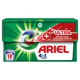 Découvrez la lessive liquide en capsules Ariel 4en1 PODS +Ultra détachant, la meilleure lessive PODS d'Ariel. Fournie avec une chambre rouge supplémentaire, elle élimine les taches incrustées à basse température, même après sept jours. De plus, les capsules Ariel 4en1 PODS sont également fabriquées en France. Elles se dissolvent rapidement, même à froid, et offrent des résultats impeccables à froid et en cycle court. Lavez à froid avec Ariel PODS : laver à basse température permet d'économiser de l'électricité et donc de réduire le CO₂. Cela protège aussi votre linge plus longtemps (par rapport aux cycles à chaud). Au contact de l'eau, le film des PODS 100 % soluble se dissout complètement pour libérer des technologies puissantes d'élimination des taches, offrant le nettoyage efficace et en profondeur d'Ariel 4en1 PODS +Ultra détachant. De plus, la lessive en capsules Ariel contribue à réduire la production de plastique grâce à sa boîte en carton recyclable ÉCOCLIC. Elle est fabriquée à 70 % à partir de fibres recyclées et ne contient que 5 % de plastique maximum, pour conserver vos PODS. Attention : ce produit peut être nocif et peut provoquer de graves blessures. Toujours conserver la lessive en capsules Ariel 4in1 PODS hors de portée des enfants. Pour plus d'informations, consulter le site keepcapsfromkids.eu