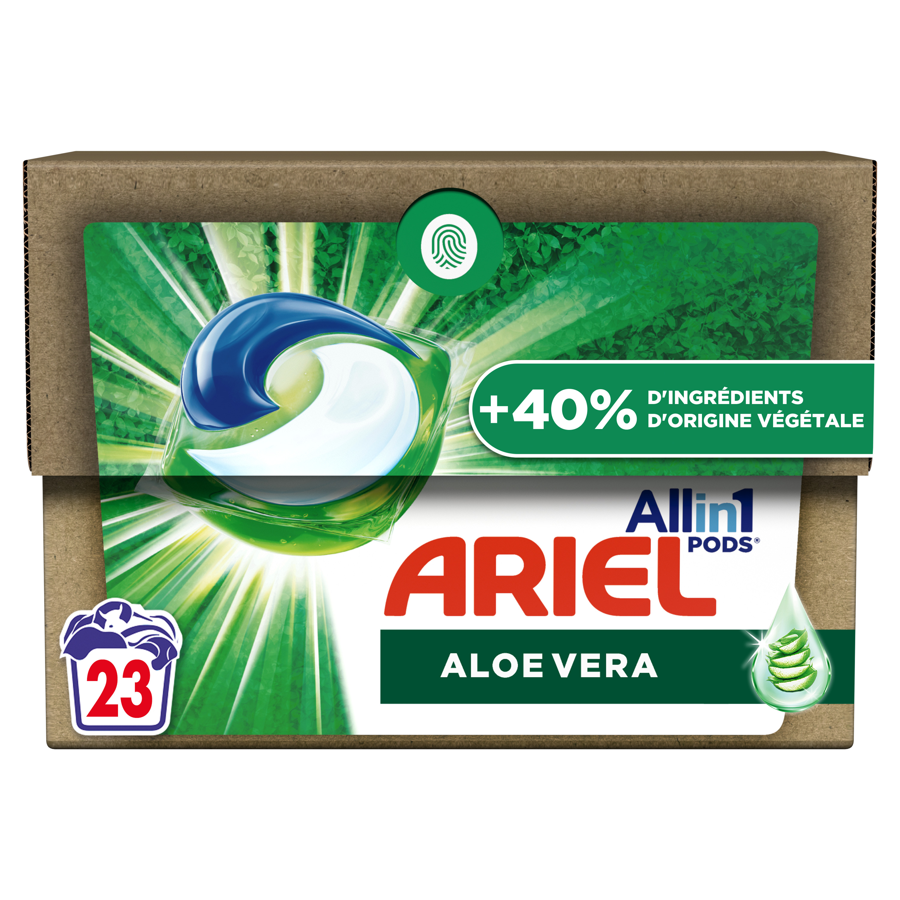 Découvrez la lessive en capsules Ariel All-in-1 PODS Coton Aérien Avec Une Touche De Aloe vera, qui offre 100 % de propreté Ariel (par rapport à Ariel Original) avec 40 % d’ingrédients d’origine végétale en plus. Elle contient un minimum de 33 % d’ingrédients d’origine végétale, soit 40 % de plus qu’Ariel Original. Elles ont aussi été conçues pour le froid, avec des technologies uniques comme la technologie Cool Clean. De plus, la lessive en tablettes Ariel contribue à réduire la production de plastique grâce à sa boîte en carton recyclable ÉCOCLIC ! Conçu pour préserver vos PODS, cet emballage est fabriqué avec 5 % de plastique maximum. Les capsules de la lessive Ariel All-in-1 PODS sont dotées d’un film 100 % hydrosoluble qui se dissout entièrement au contact de l’eau pour libérer leurs puissants agents détachants. Attention : Ce produit peut être nocif et peut provoquer de graves blessures. Toujours conserver la lessive en tablettes Ariel All-in-1 PODS hors de portée des enfants. Pour plus d’informations, consulter le site keepcapsfromkids.eu.