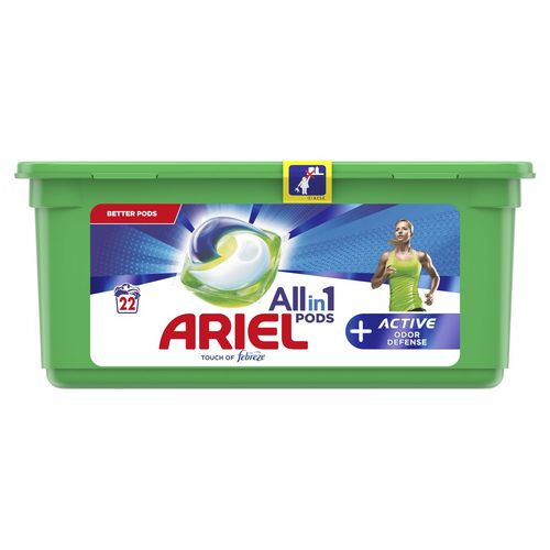 Ariel Allin1 Pods +Défense Active Contre Les Odeurs Lessive En Capsules 22 Lavages