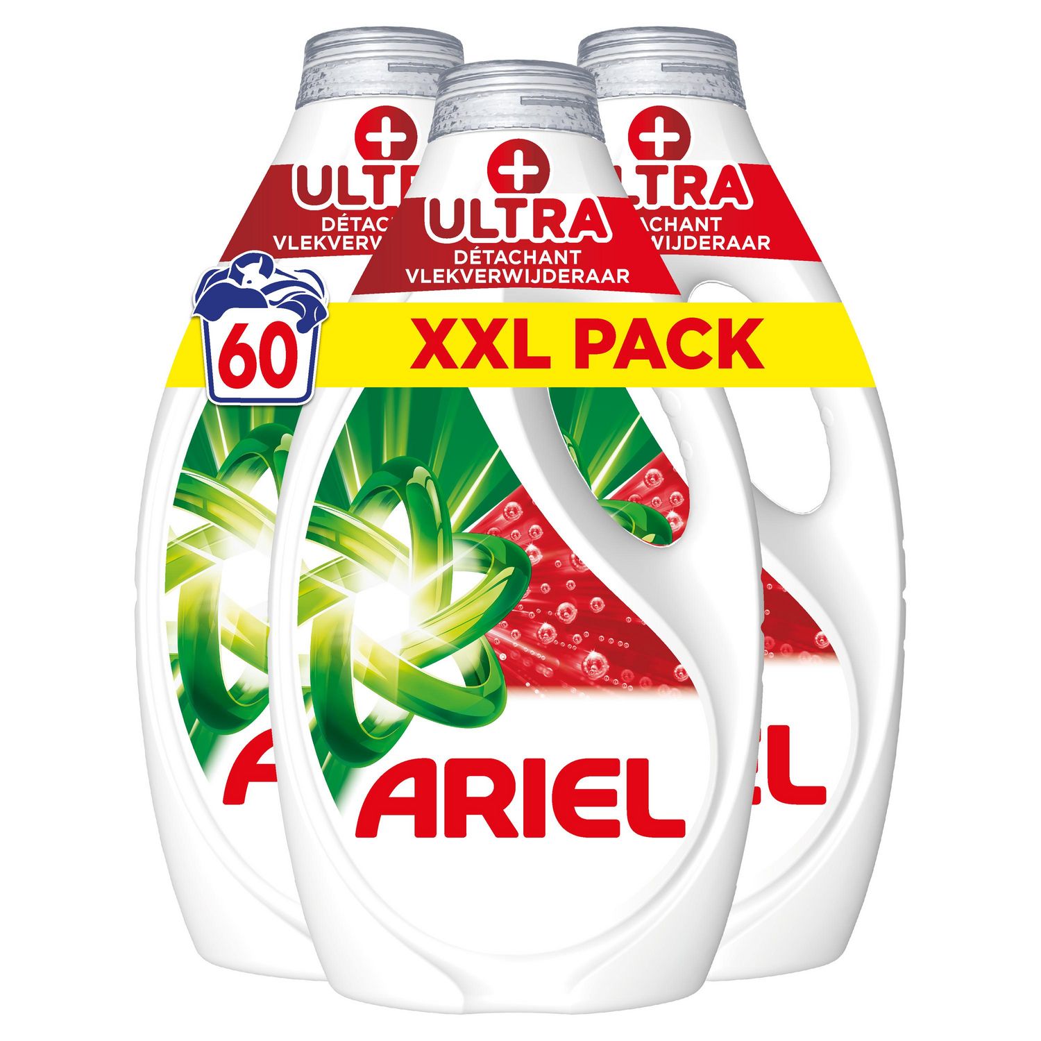 NETTOYAGE IMPECCABLE + ULTRA DÉTACHANT : la lessive liquide Ariel élimine les taches incrustées, même après 7 jours, et offre des résultats impeccables à basse température